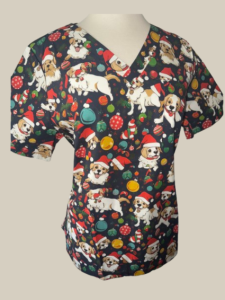 S12 Doggy Christmas V-Neck Scrub Top/ Scrubs4U
